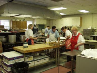 The dinners began to interfere with marching in 1958 and more and more supplies were being bought for the kitchen. Mrs. Rohr commented in 1959, "We are kitchen-minded now. We bought oven racks, repaired the kitchen table, purchased two serving tables, saw that a screen door was installed in the kitchen. We began to think about purchasing cooling equipment for the kitchen. Because we spent more time in the kitchen, members objected to spending time in marching." And since that time, the auxiliary continues to serve dinners and assist the firemen through their donations.