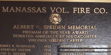 Fireman of the year award donated annually by his daughter Virginia Speiden Carper